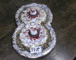 ![]() | 選外 3班:抹茶クリームのケーキ 配色としてはいかにも私ごのみでございます。この薄緑がかったボディがなんともいえないハーモニー。なぜ、この作品が受賞ではないのかしら? |