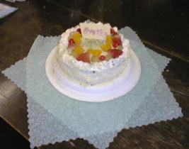 ![]() | 選外 1班:人生まだ半分 ケーキで階段をつくり、人生の道のりをあらわしていらっしゃる。私の重ねた月日から考えると、少々気の向きが悪うございます。 |
