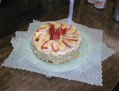 | ◆ 受賞作 ◆ 4班:バナナクリームのケーキ 評・バナナをつぶして、私の顔もつぶして、 ふんだりけったり。 大変お不味うございました。 |